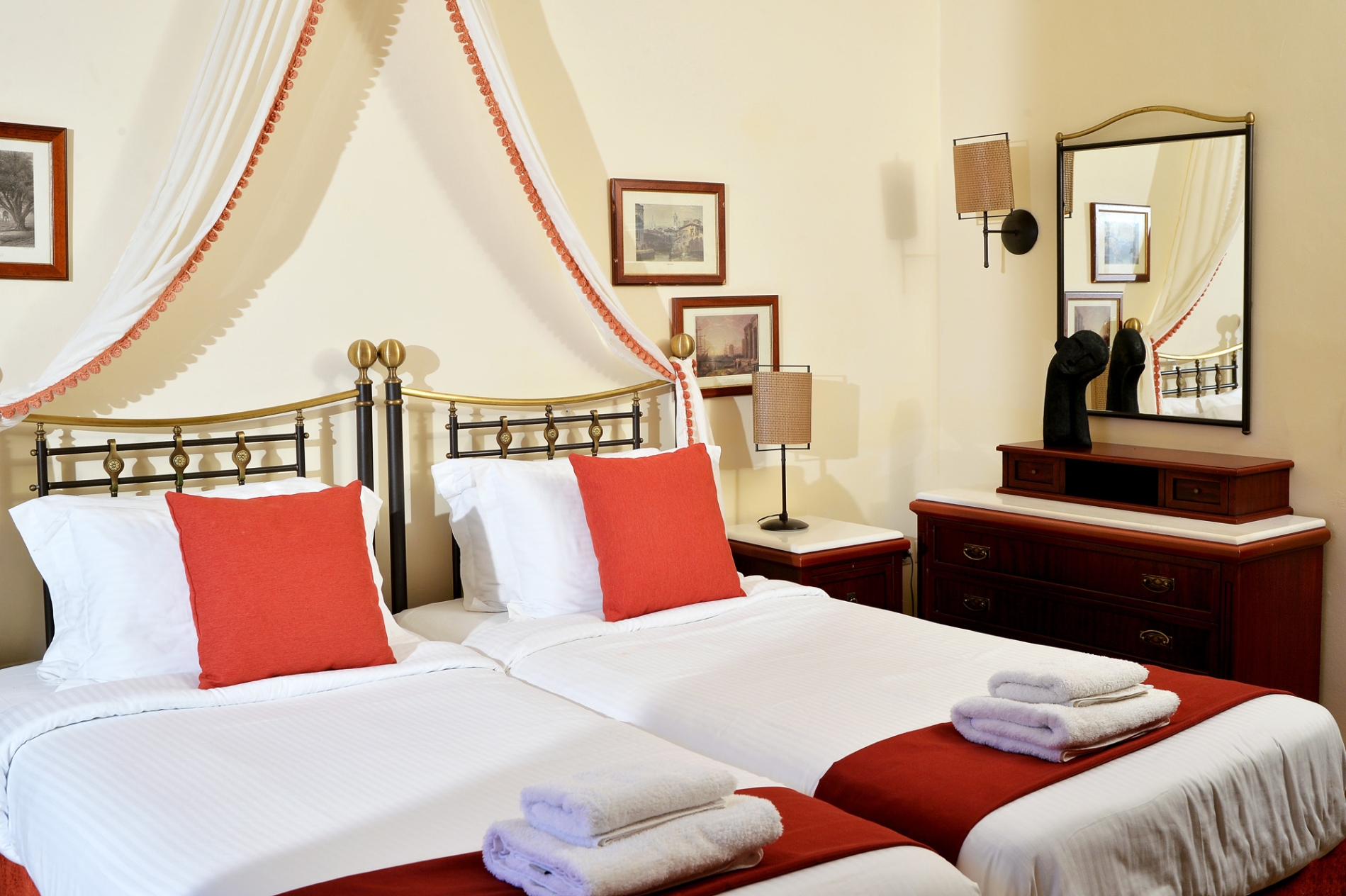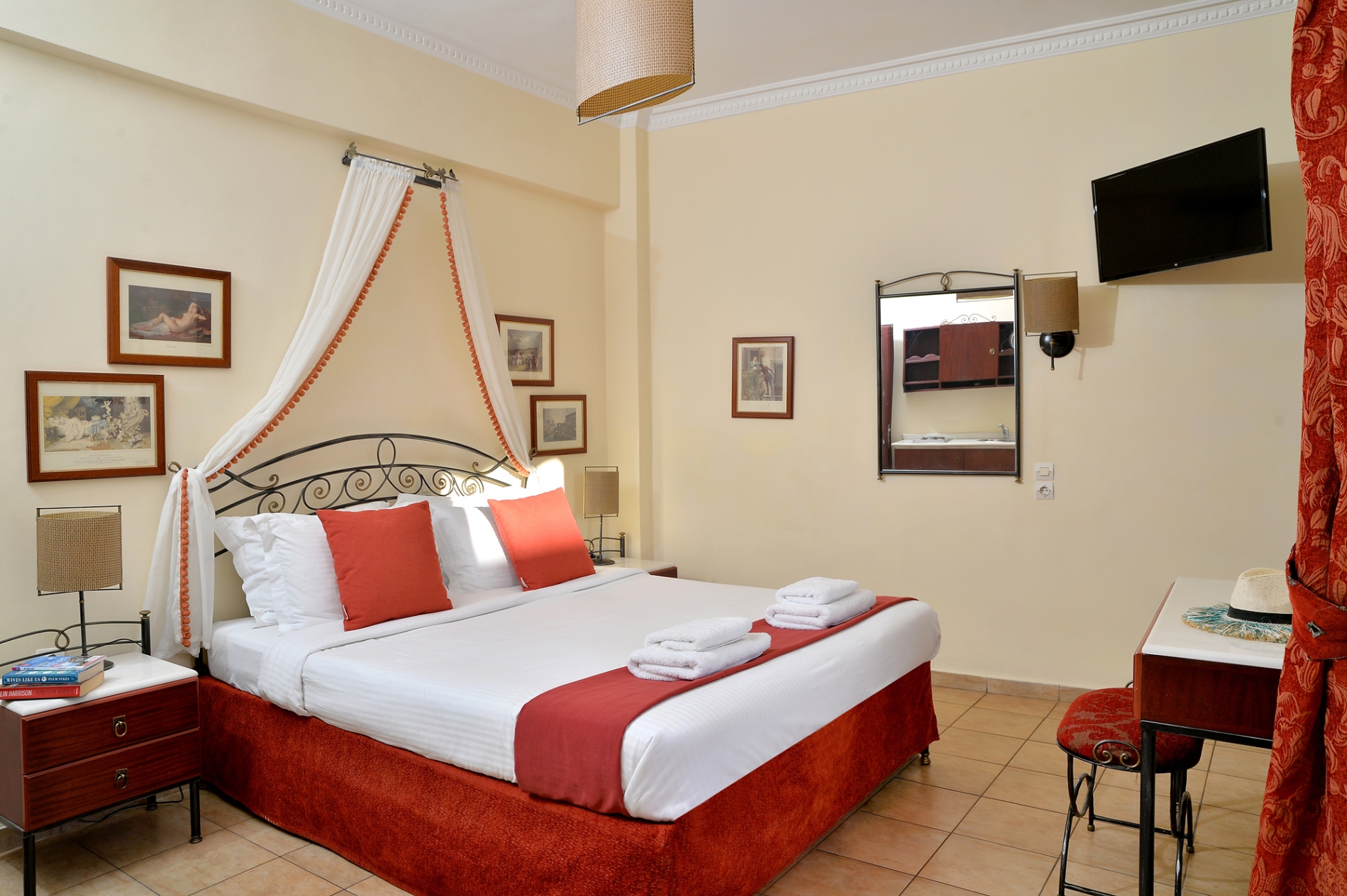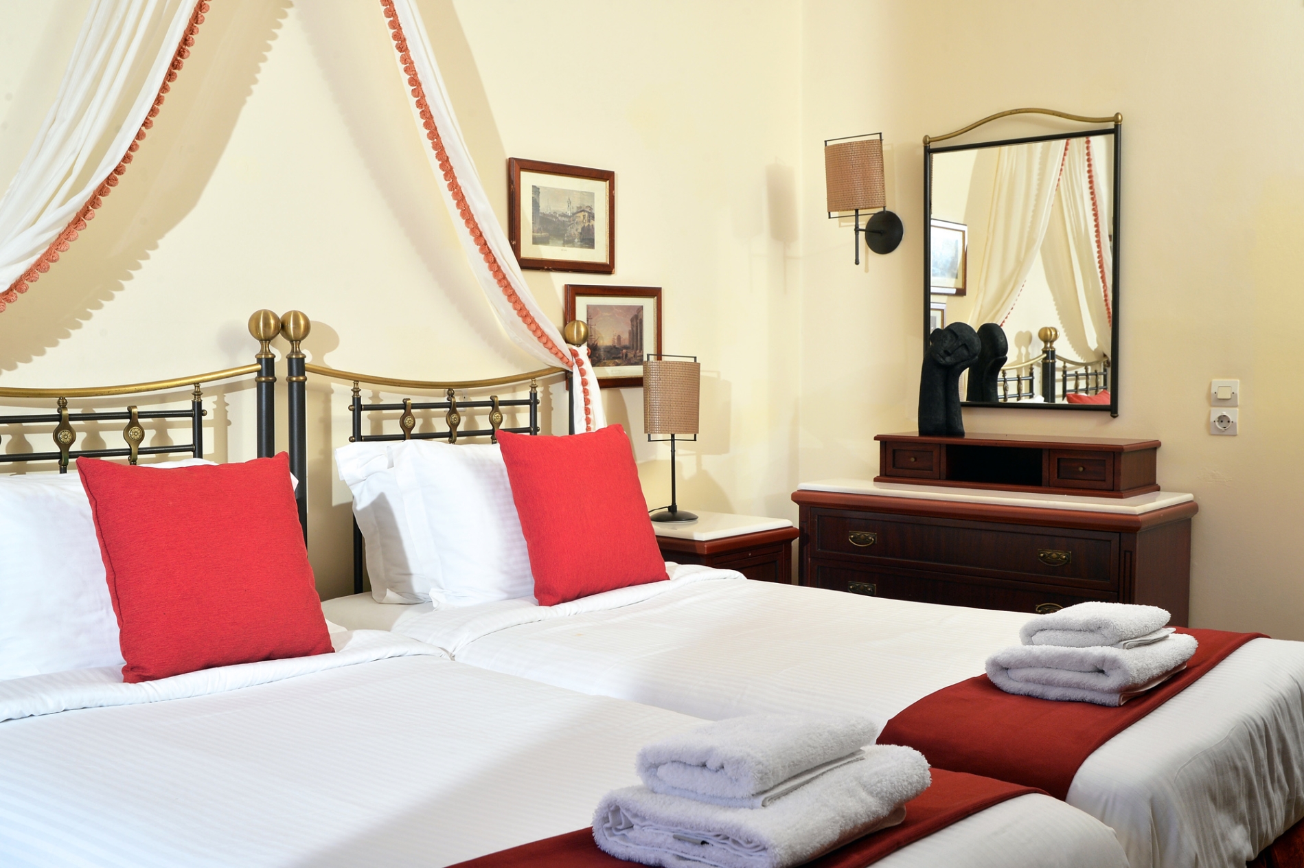 Υπάρχουν 8 δωμάτια στον πρώτο ή δεύτερο όροφο με διπλό ή δύο μονά κρεβάτια. Υπάρχει ιδιωτικό μπαλκόνι.